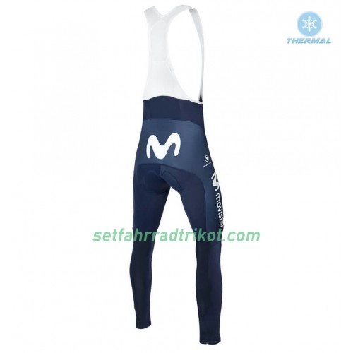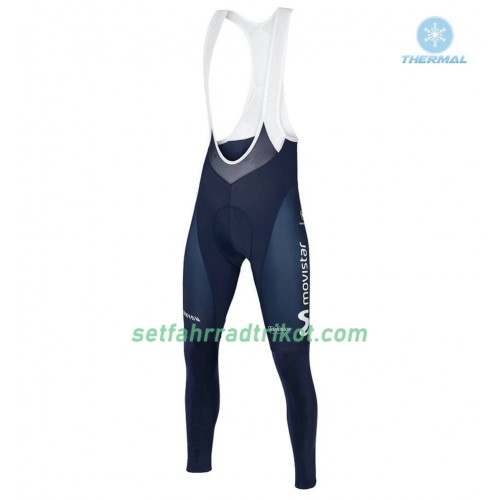 Radbekleidung Radtrikot Langarm + Lang Trägerhose 2018 Movistar Team Winter Thermal Fleece N001