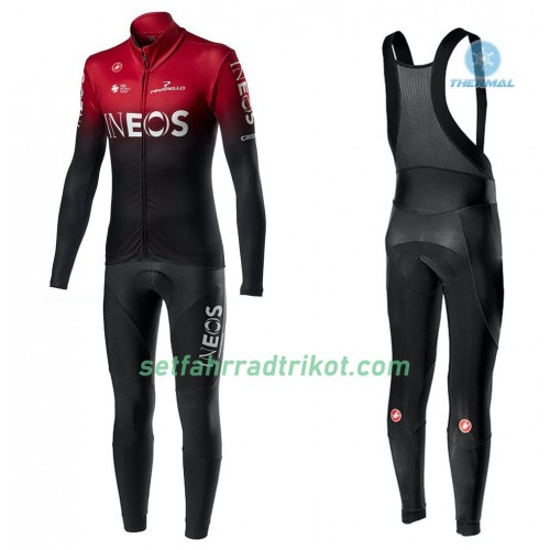 Radbekleidung Radtrikot Langarm + Lang Trägerhose 2020 TEAM INEOS Winter Thermal Fleece N001